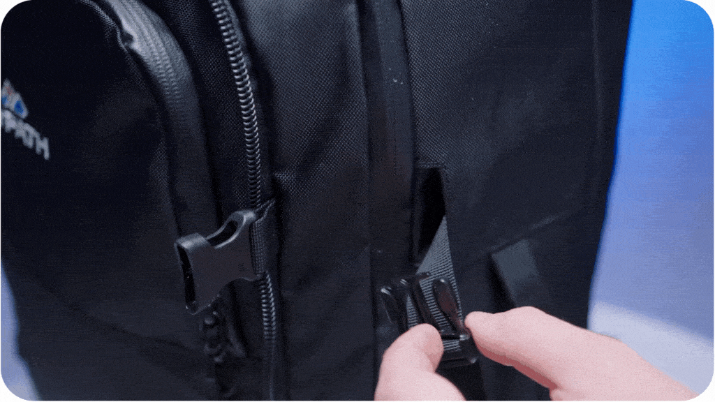 Hidden openings on the sides of the bag allow you to conceal loose buckles and straps, preventing them from getting caught or tangled when not in use.