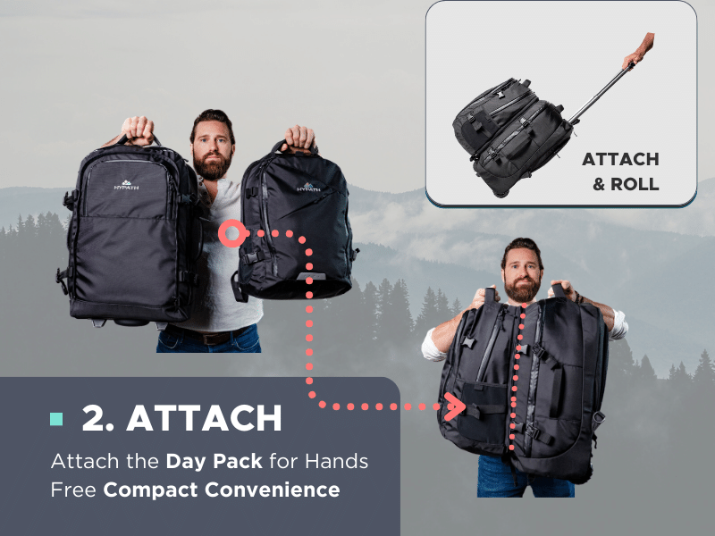 The Hypath Transformer Backpack includes a detachable daypack that can be used on its own or attached to the larger bag. This provides additional storage options and flexibility for day trips or excursions.