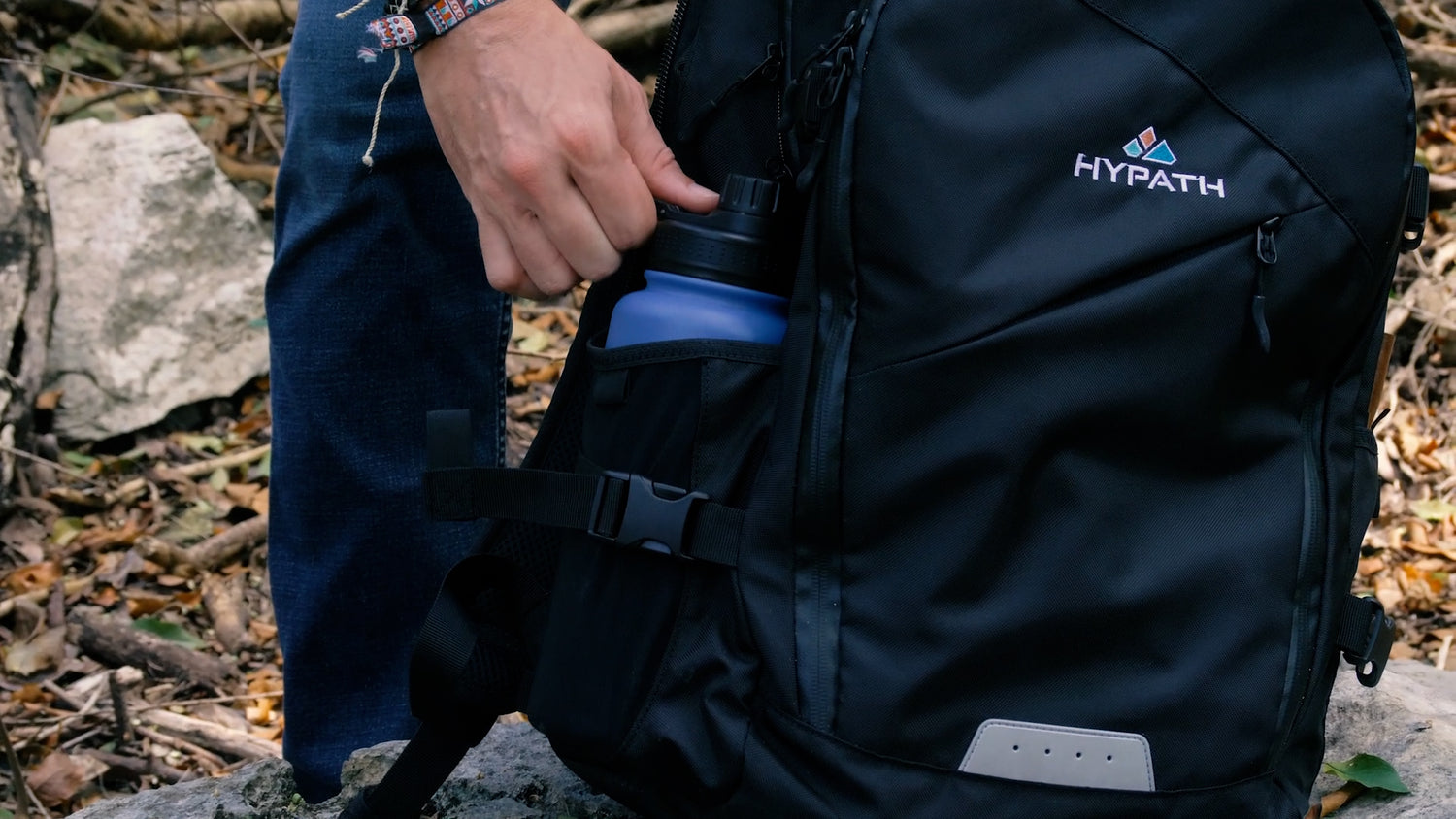 The side mesh pockets are large enough for your biggest water bottle, and have compression straps to secure taller items such as a tripod or yoga mat.