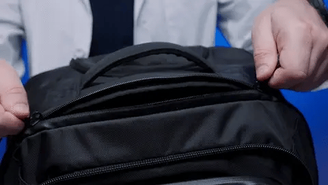Simply unzip the panel on the back of the roller to reveal shoulder straps and a hip belt and easily transform into a backpack in seconds.